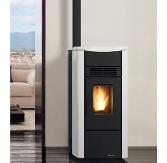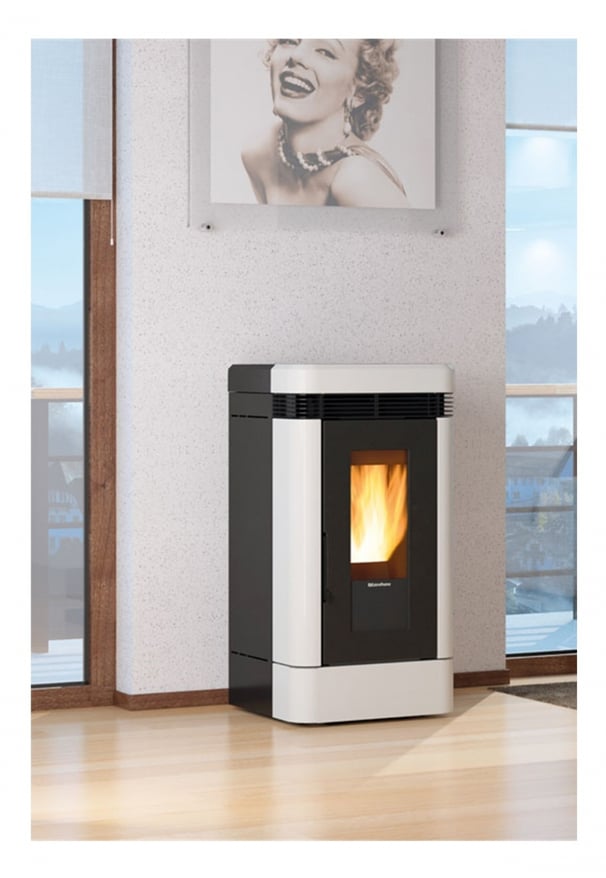 Houtpelletkachel • Bekleding in staal met top in majolica • Vuurdeur, vuurhaard en vuurpot in gietijzer • Warmtewisselaar met stralingsoppervlak • Hermetisch reservoir • Verwijderbaar ascompartiment • Frontale omgevingsventilatie met aparte motor en comfortfunctie • Ruim zicht op de vlam • Handgreep met ergonomisch greep • Mogelijkheid uitgang voor rookafvoer: achter, boven • Vuurhaard verwijderbaar door bevoegde assistentie • Black LCD • Afstandsbediening IR Touch met Achtergrondverlichting • OPTIES : wifi module (zwarte etiket)