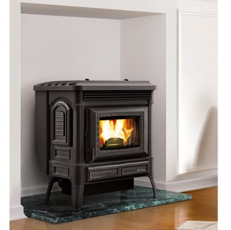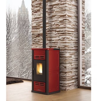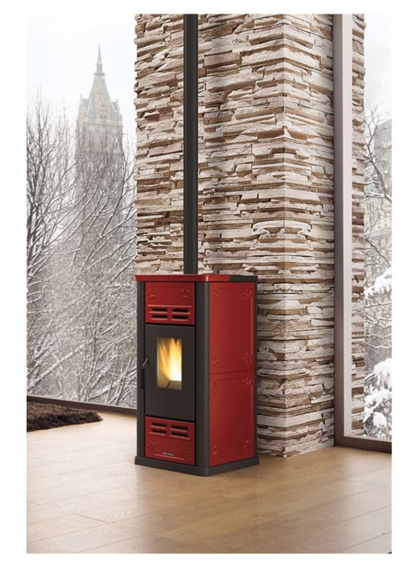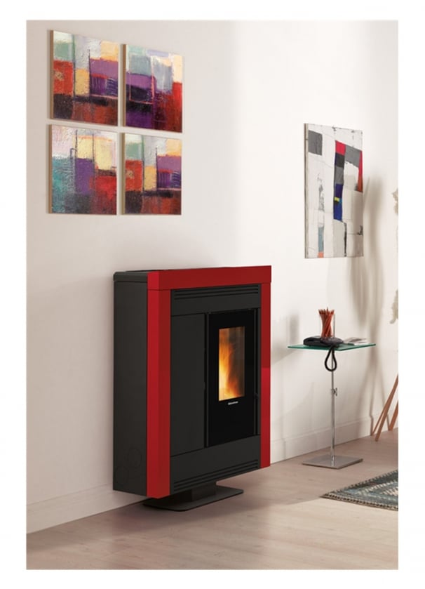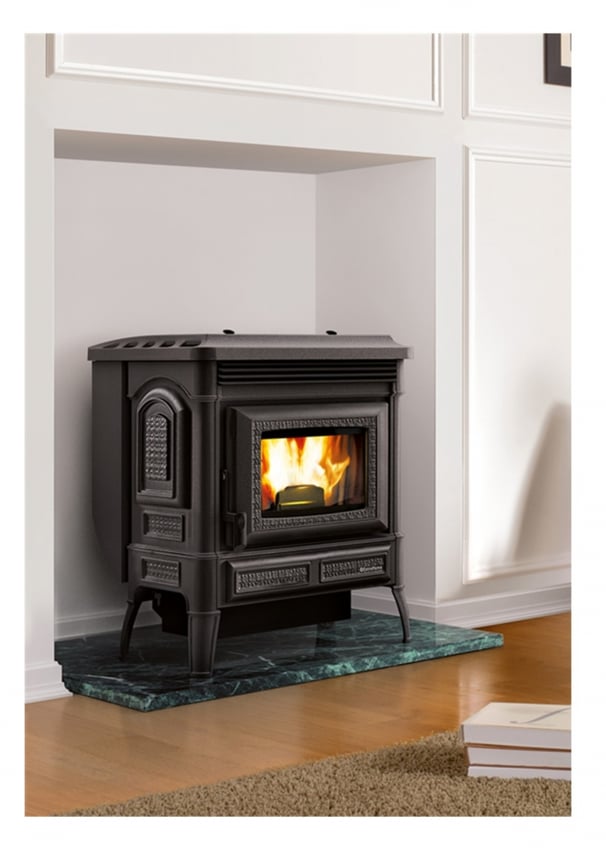 Pelletkachel • Bekleding in geëmailleerd gietijzer • Vuurdeur, vuurhaard en branderpot in gietijzer • Warmetwisselaar met buizenbundel (handmatige reiniging) • hermetisch reservoir • Frontale ruimteventilatie met speciale motor en comfortfunctie • Ergonomische handgreep • Vuurhaard uitneembaar door erkende assistentie • Mogelijkheid van uitgang voor rookafvoer: achter in lijn • Structuur in geëmailleerd gietijzer voor een lange levensduur • LCD-display Black • IR Touch-afstandsbediening