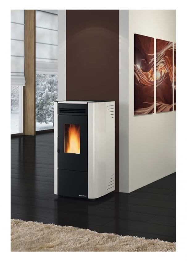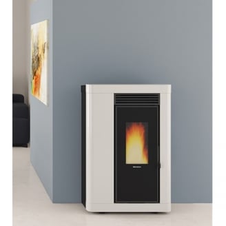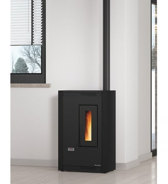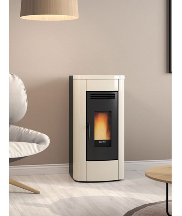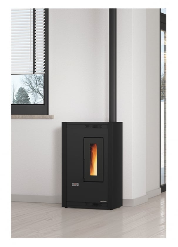 Kachel op pellets • Vuurdeur, vuurhaard en vuurpot in gietijzer • Warmtewisselaar met stralingsoppervlak • Verwijderbaar ascompartiment • Frontale omgevingsventilatie met aparte motor en comfortfunctie • Mogelijkheid uitgang voor rookafvoer: achter • Vuurhaard verwijderbaar door bevoegde assistentie • Black LCD • OPTIES : wifi module (zwart etiket) - IR Touch afstandsbediening
